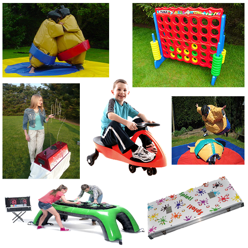 We have games for children and adults alike so if you're hiring a Bouncy Castle for a children's party, why not a hire the Didicars, Sumo Suits, the Giant Buzzer, the Giant Mega 4 Garden Game, the Splat Game or the Interactive Table Game at a specially reduced price if you hire them with a Castle. One call is all it takes.